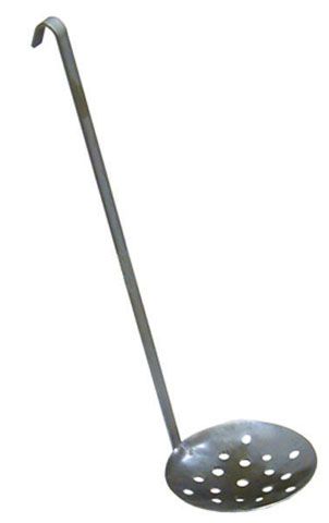 ממש חשוב שהחורים יישארו פתוחים אחרת הגלגל על המלכודת עלול להתקע. ואז הדגל לא יעלה אם יש דג.אחרי שקודחים את החור משתמשים בכף הזאת להוציא את כל הקרח והשלג מהחור