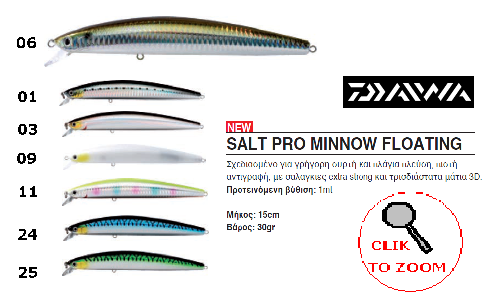 תיאור : דמוי טופ ווטר צף, מעולה ועף רחוק, מזגזג מצויין ודי פשוט להפעלה, מושך דגים ממרחקים ומייצר V ארוך מאחוריו, עובד מעולה בעיקר בים נמוך עד נמוך מאוד אך עובד גם בים גלי.