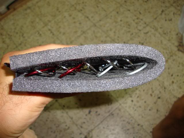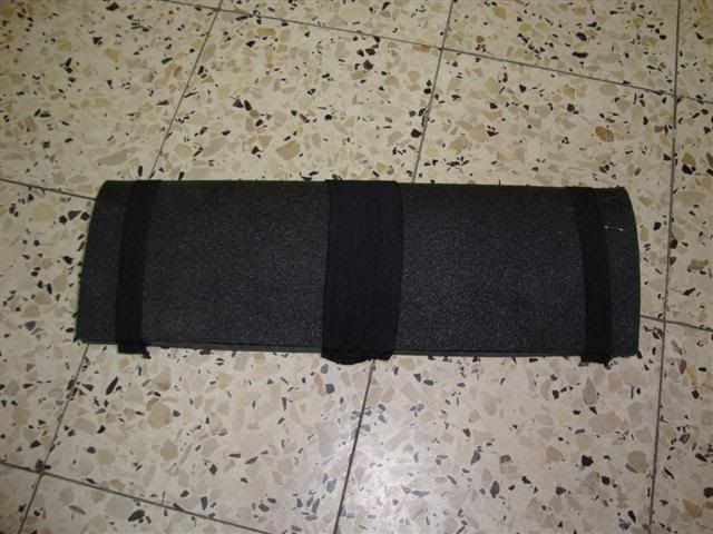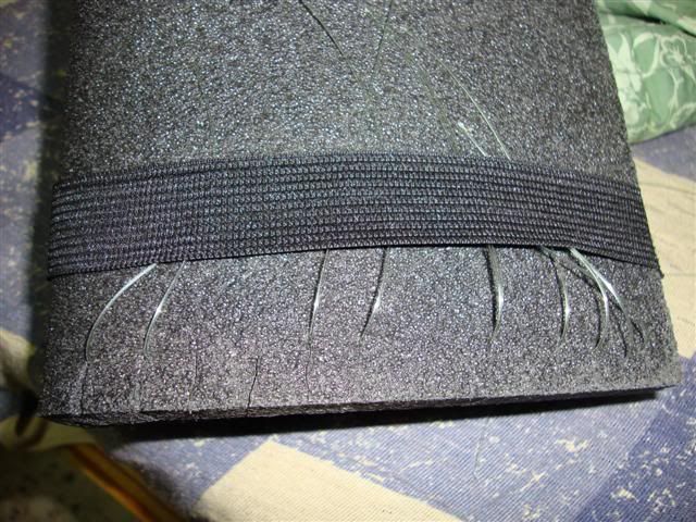 מזרן ספוג עבה{פלציב ולא הספוג המצ'וקמק שנמכר בחנויות מחנאות} או פלציב עבה חתוך באמצע ל2 פרוסות, חתכים קטנים בקצה אחד כדי לתקוע את החוטים וגומיות/גומי הפעלה כדי לשמור על העסק סגור.