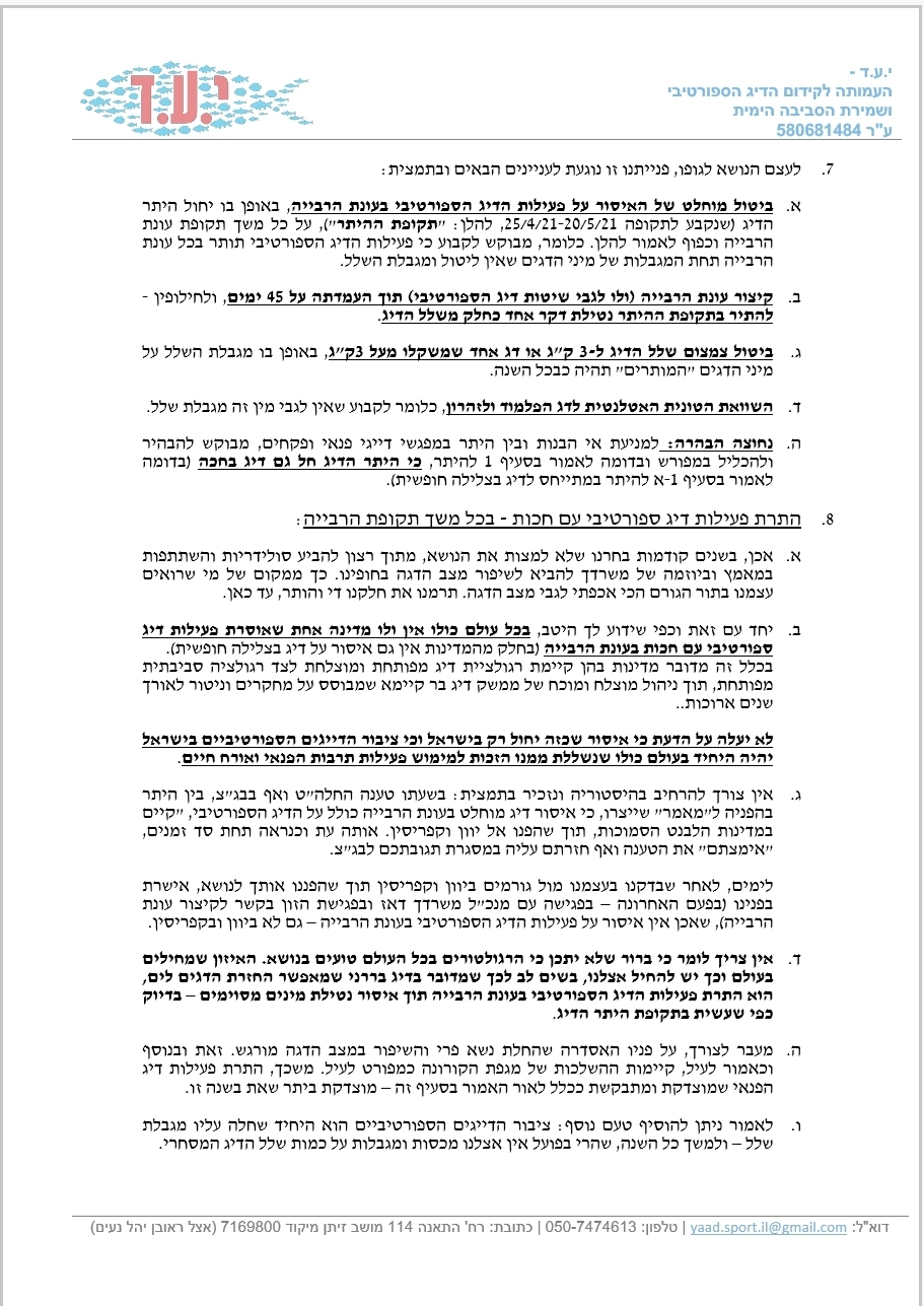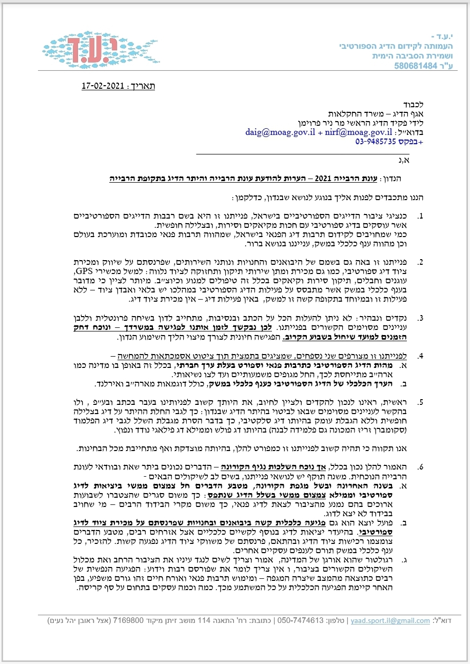 | | |-+  עונת הרבייה 2021: פנייתנו לאגף הדיג לביטול איסור פעילות הדיג הספורטיבי ועוד