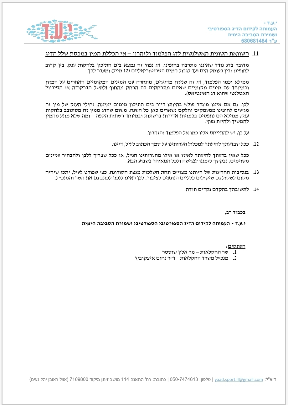 אנו ממתינים לתשובת מנהל אגף הדיג לפנייתנו, ועד אז -