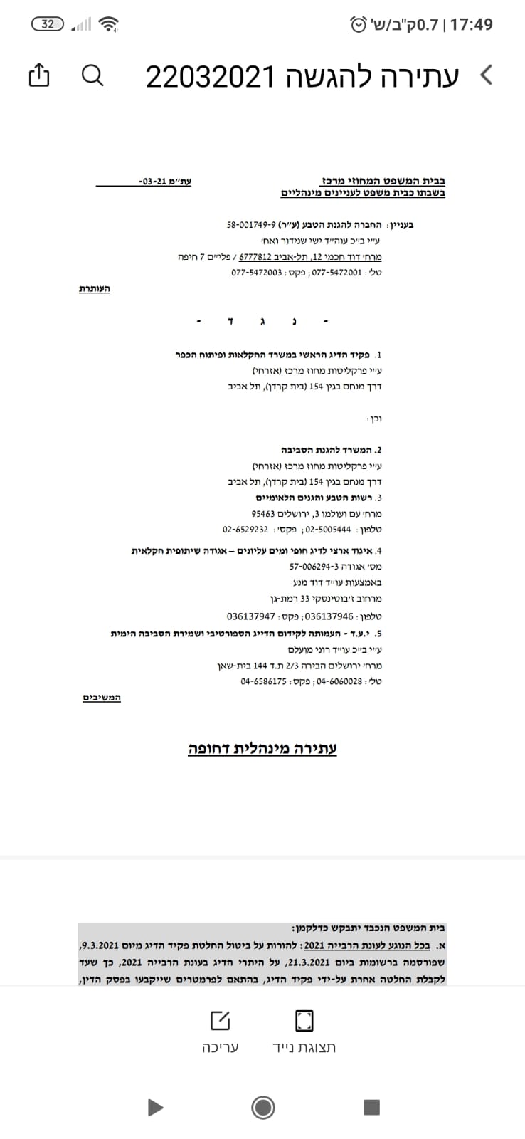 הם צירפו אותנו לעתירה כי לפי החוק מחובתם לצרף כל נציגות של ציבור שצפוי להיפגע מההחלטה (לכן צירפו גם את הדייגים המקצועיים).