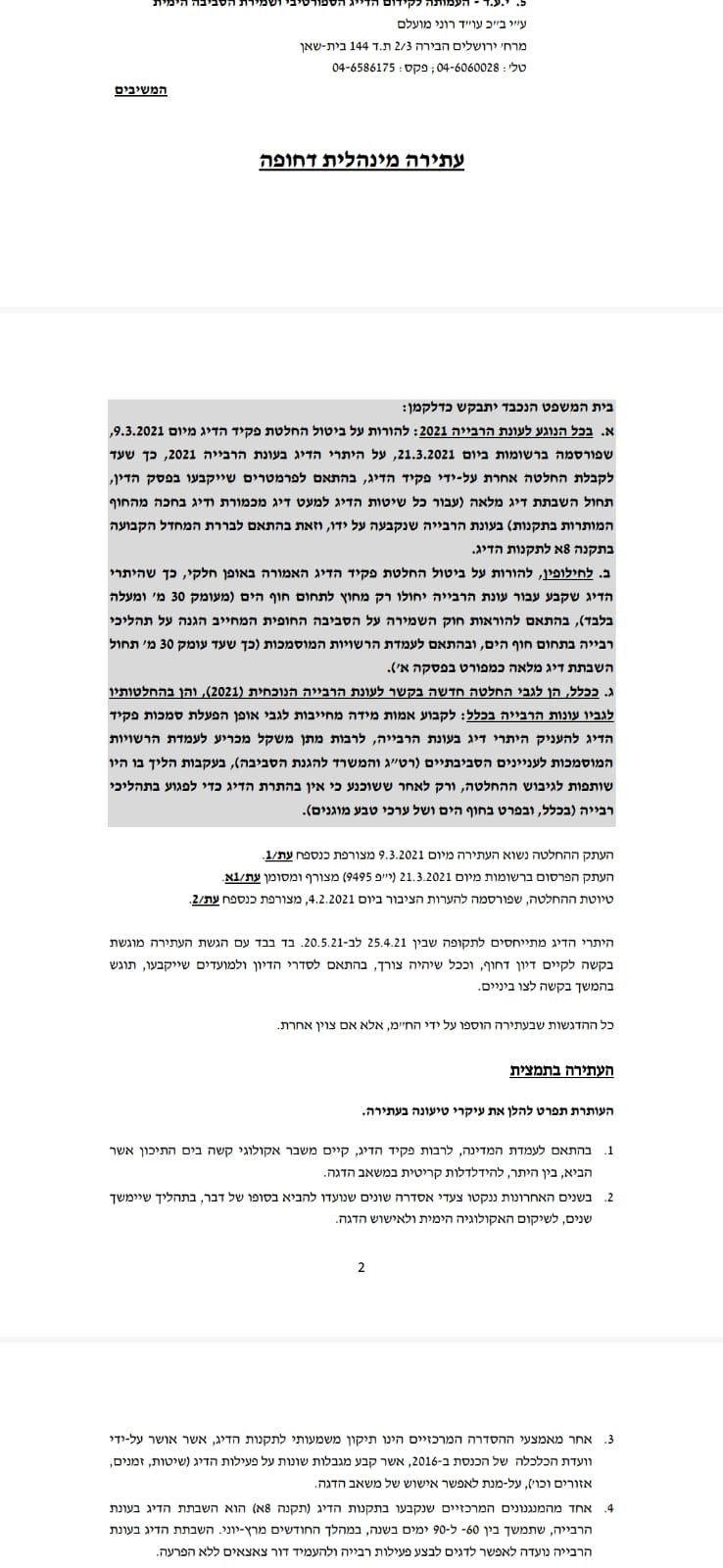 לטעמנו, מה שניתן והותר הוא מעט מידי ולא מספיק, היתה התלבטות אם להגיש עתירה שלנו או לנסות למצות את הדברים מול אגף הדיג ובלית ברירה לעתור בשנה הבאה.